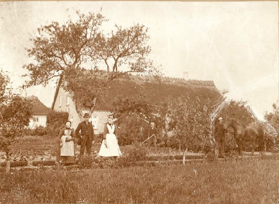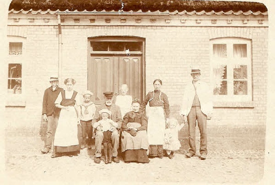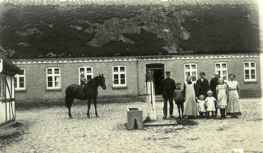 Billedet har jeg lånt af Elly Frandsen, som fortæller, at manden til højre er Hans Hansen. Den voksne kvinde derefter er Anna Hansen.