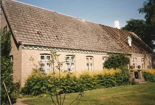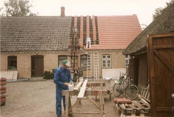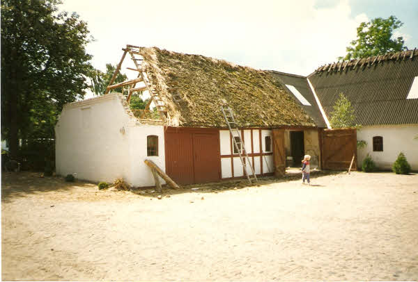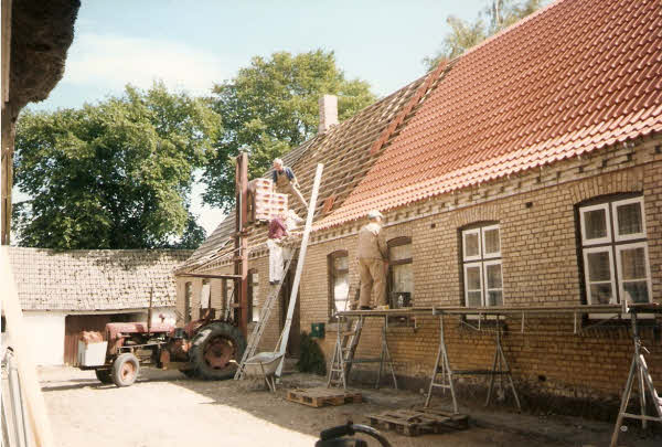Sommer 1997 Stråtag over vognport udskiftes med plader.