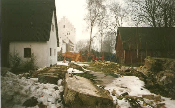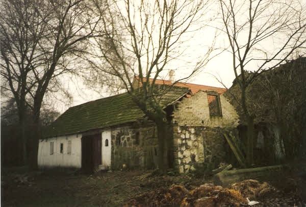 Marts 1995Det gamle grisehus af kampesten inden nedrivningen.