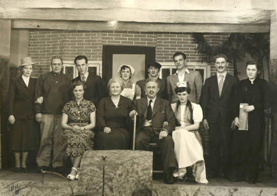 Min far sidder med stokken på første række, og Johanne igen som ”hans kone”.