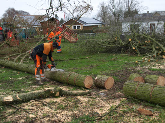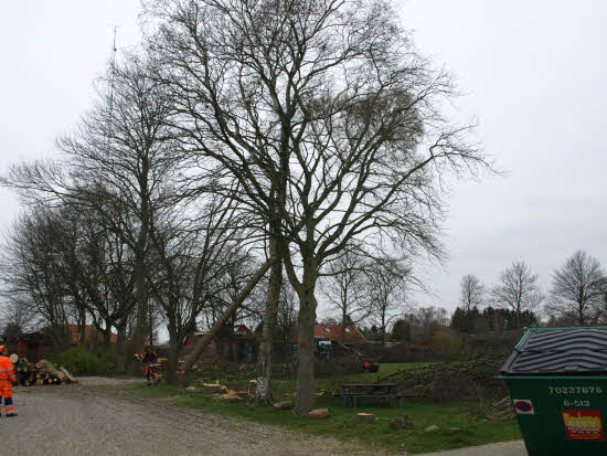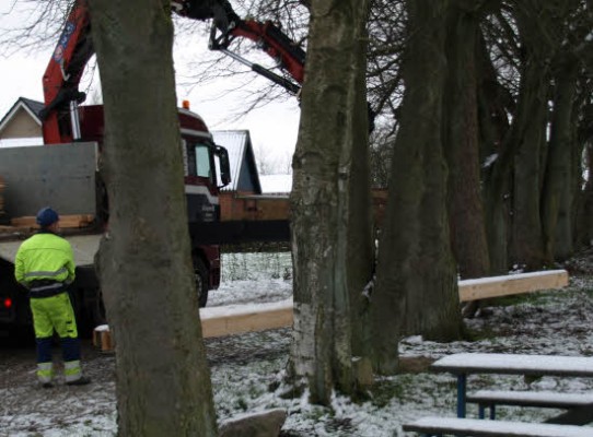 Nyborg Kommune var i gang med at lægge træer ned, og forinden var materialerne til bålhytten blevet flyttet, så det ikke lå i vejen for træfældningen.