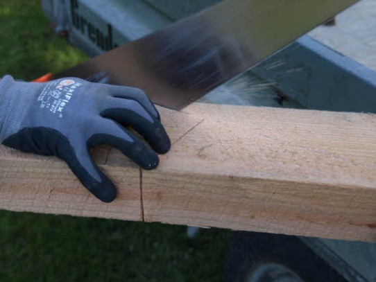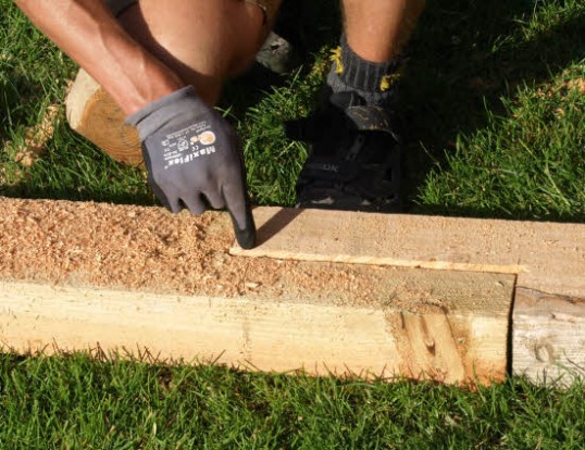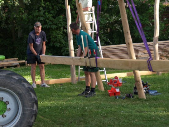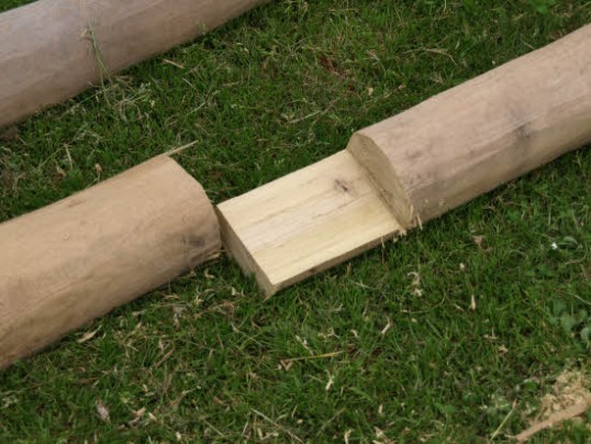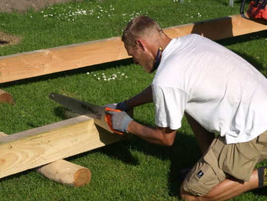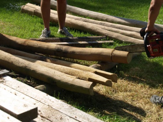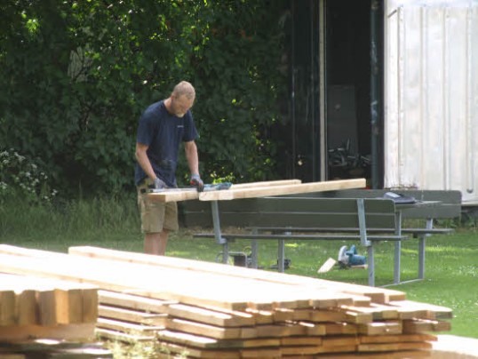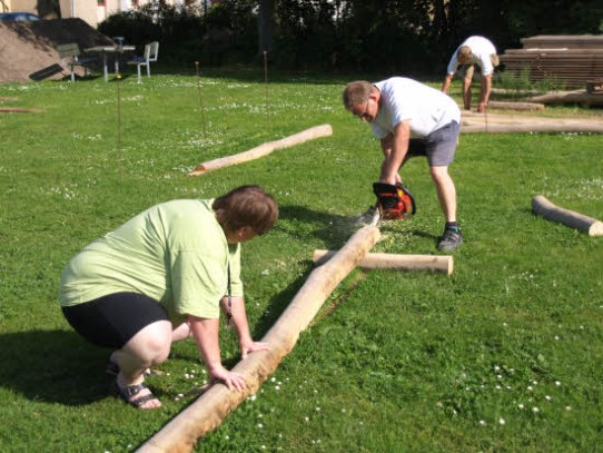 Efter aftale blev den ene stamme skåret ud i trillere, som skulle bruges til siddepladser i bålhytten.Desværre har nogen "organiseret" disse siddepladser til placering et andet sted.