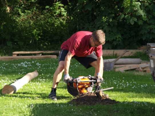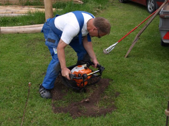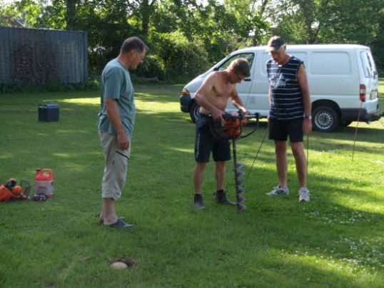 Første arbejdsdag.Alex Johansen er ved grave det første stolpehul.