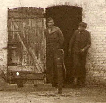 På billedet ses sønnerne Alfred og Richard stå i døren ind til værkstedet.