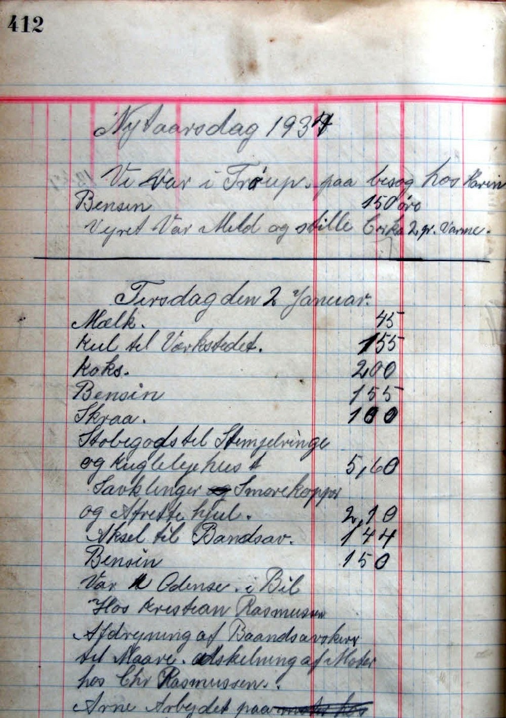 Her ses et andet uddrag fra Karl Bæk dagbog (side 412) fra Nytårsdag 1934.