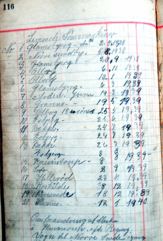 I alt blev der leveret 20 maskiner til savværker i Danmark (efter Karl Bæk’s dagbog side 116 fra 1938 til 1940). Det var efter datidens forhold et meget stort antal maskiner!