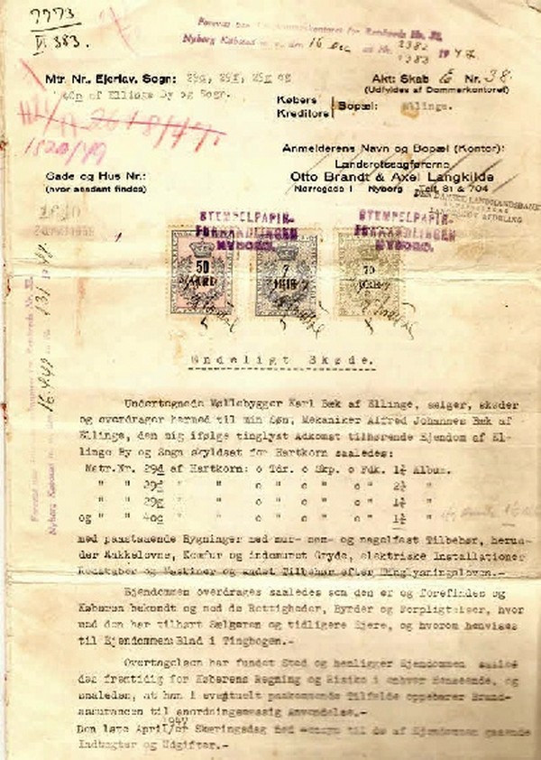 Karl Bæk flyttede ind i huset omkring dette årstal. I huset var der mange ting fra den tidlige beboer, som Karl Bæk ikke kunne anvende til sin fabrik, alle de ting blev så solgt på denne auktion. Men vi har også bemærket, at det ikke er en decideret Bæk auktion, for der er mange andre ting, som ikke havde med fabrikken at gøre, derfor mener vi, at andre naboer var mødt op med deres ting til auktionen".