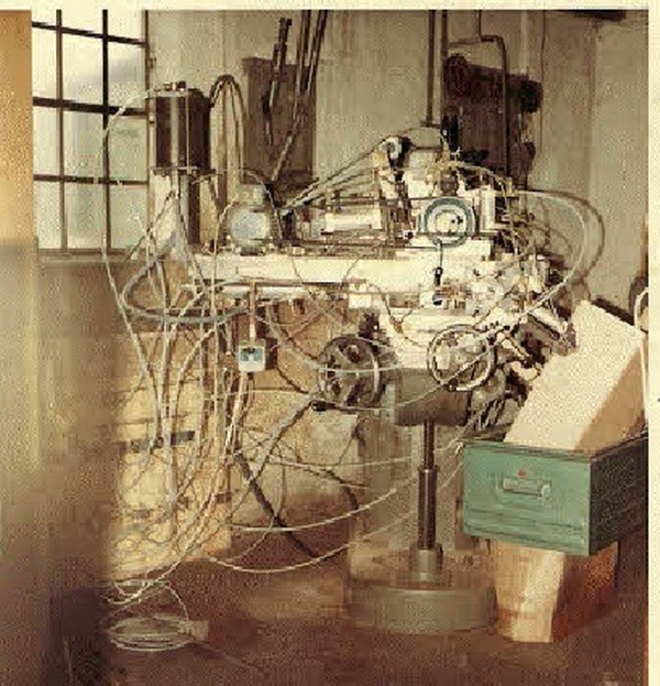 En af Alfreds trykluft testmaskiner, hvor komponenter blev afprøvet.