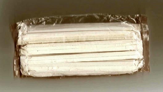 Her ser vi resultatet med pakning af en pose med sugerør.