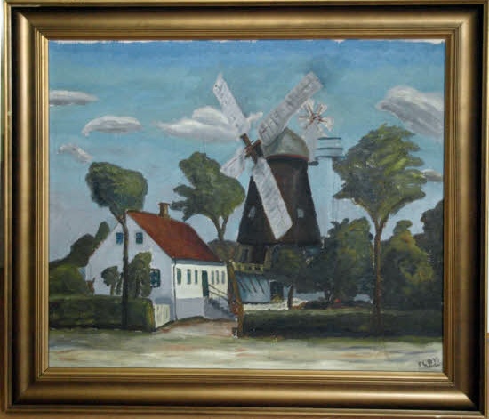 Ellinge Mølle blev malet i 1937 (måske står der 32).