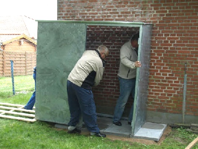 Tirsdag den 3. maj 2011 samledes bestyrelsen for at opstille det nye redskabhus, og arbejdet blev lavet hurtigt og effektivt, for det trak op til en gevaldig gang regn.