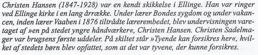 Christen Hansen (1847-1928) var en kendt skikkelse i Ellinge. Han var ringer ved Ellinge kirke i en lang årrække.