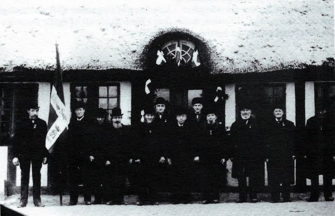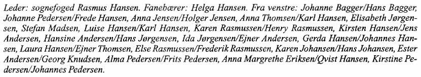 Leder: Sognefoged Rasmus Hansen. Fanebærer: Helga Hansen. Fra venstre: Johanne Bagger/Hans Bagget,