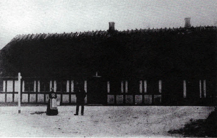 14 | 92, 94 og 96 | Foto/tegning: - Ellinge skole med lærer Vaaben ca. 1898 - og her foran den nye skolebygning i 1904 - Hospitalet (Fattighuset) |