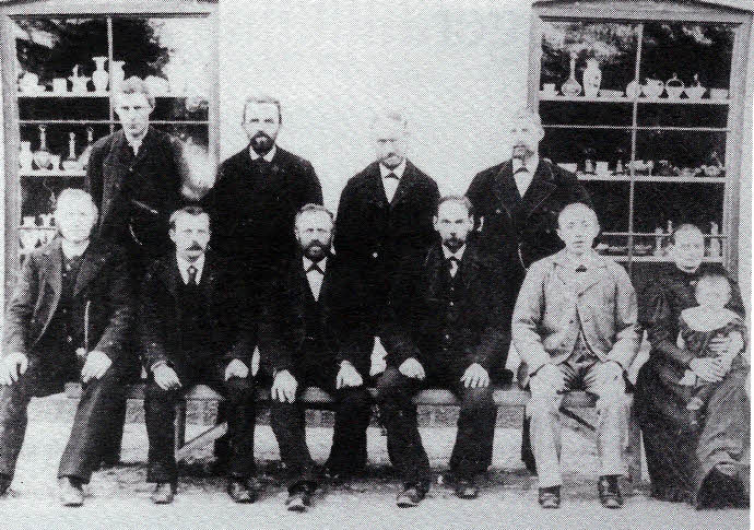 Siddende fra venstre: Ester Kern, Georg Knudsen, Henrik Eriksen.