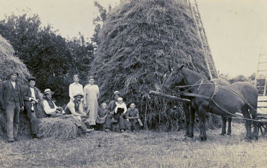 Der var et foto af høsten på Holmelund cirka 1910-1920.