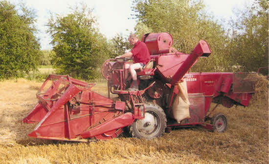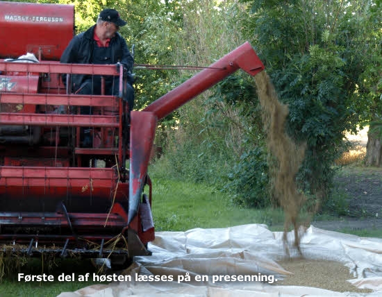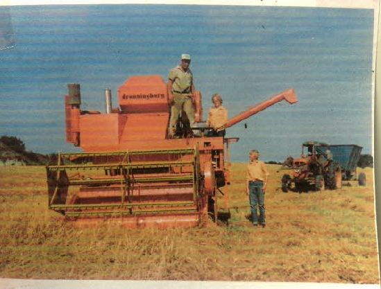 Høst 1973Jeg sender dig lige et par fra høsten dengang der ikke var så meget beskyttelse mod støv, men det var noget man blev meget sort i ansigtet, men der var heldigvis noget der hed vand dengang.
