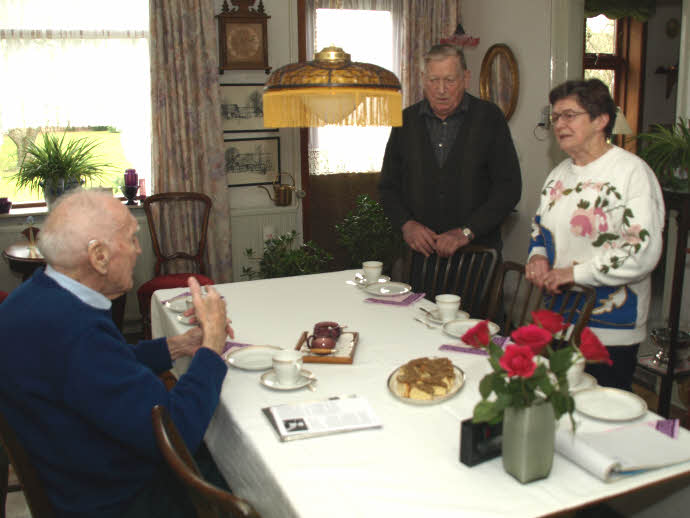 Johannes Bækkelund havde kun lige sat sig ned, da han begyndte at fortælle – mens Inger Fredslund og Erik Ellegaard lyttede.