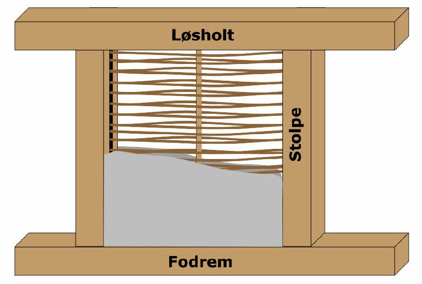 Træ til bjælker og spær til lader var ellers afkantet og topspidset træ fra Sverige eller Norge.
