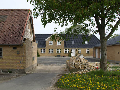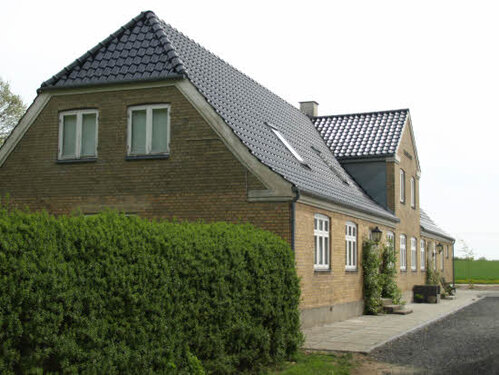 Tre fag var bryggers med en meget stor skorsten, samt plads til dejtrug, kar, trappen til loftet og så videre. Ovnen stak ud i det fri og blev kun dækket af et tag, som hvilede på kløvede træstivere af eg i bundbygning”.