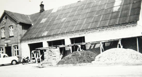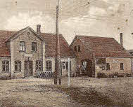 Det lille billede til højre er et udsnit af et gammelt postkort, hvor man kan se udsalget, med en dør og ét vindue.