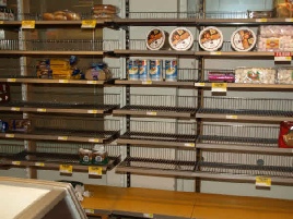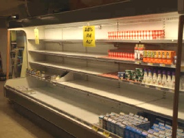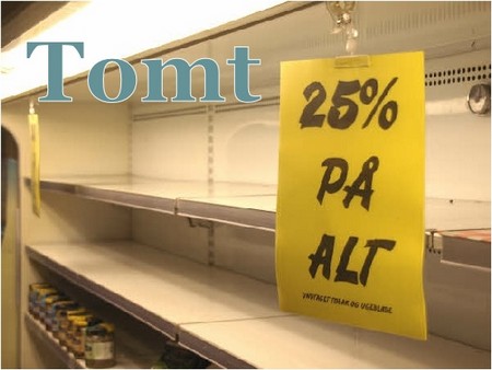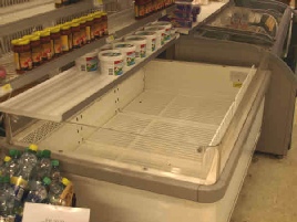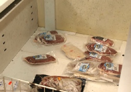 Nogle hylder er helt tomme, det samme gælder et par af frysediskene. De få pakkerandebryst der er tilbage, ligger og ser meget ensomme ud.