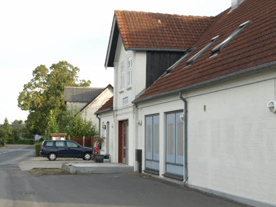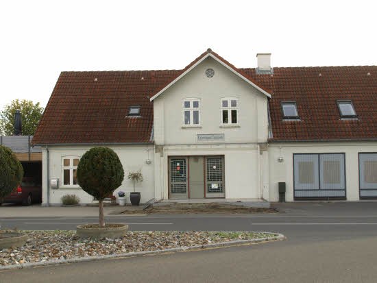 Bygningen er den gamle Ellinge Kro, og det lille udsalg havde til huse i fløjen til højre for den nuværende indgang.