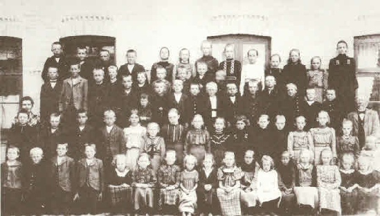 Billedet har jeg lånt af Lokalhistorisk Arkiv. Lærer Vaaben sidder ude til højre.