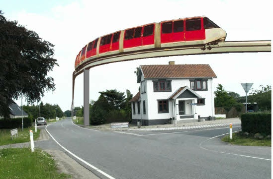 Anonymt har nogen afleveret en fotomontage i min postkasse, og dér kan man se hvordan højbanen er projekteret til at dreje fra Ferritslevvej og ned ad Ellingevej.