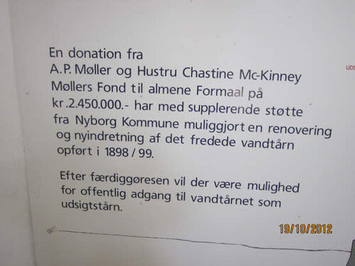 Det gamle vandtårn i Nyborg blev fredet i 1997, og ved en donation på kr. 2.450.000 fra A.P. Møller og Hustru Chastine McKinney Møllers fond, samt supplerende støtte fra Nyborg Kommune er vandtårnet blevet renoveret og nyindrettet.