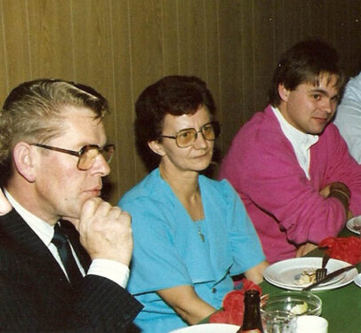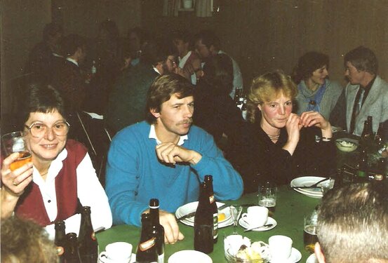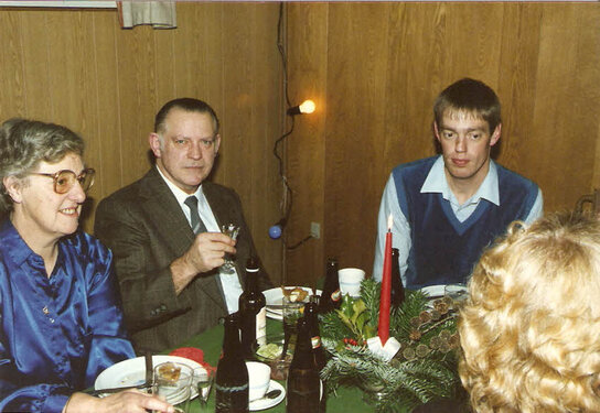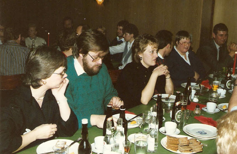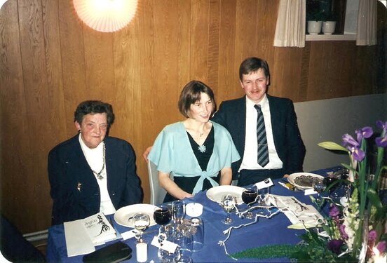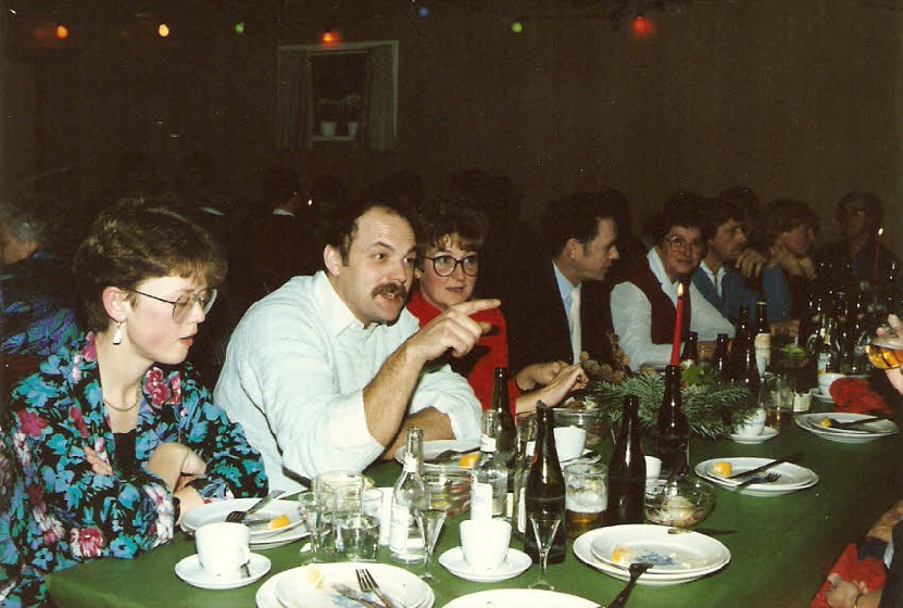 Kirsten og Leif Birk ved en julefrokost i Ellinge Forsamlingshus i 1987.