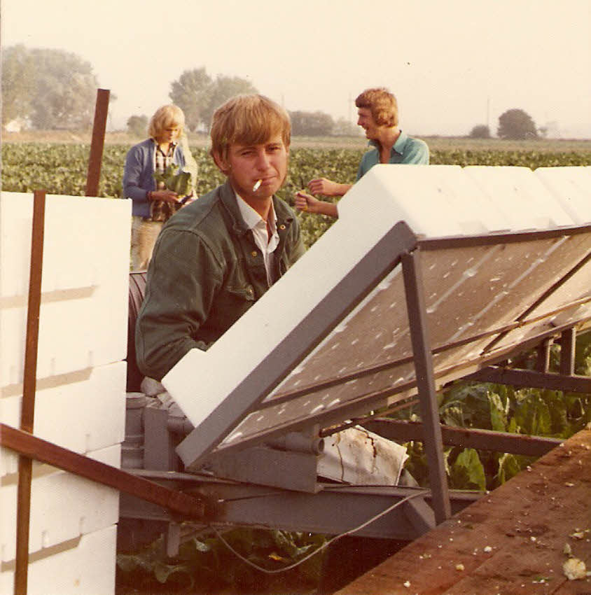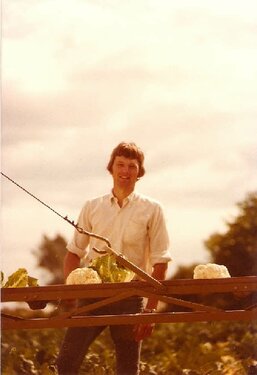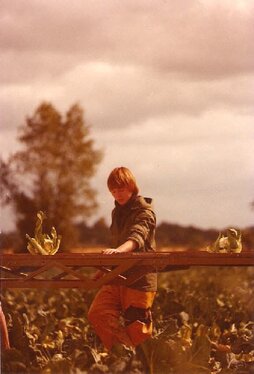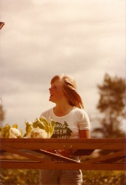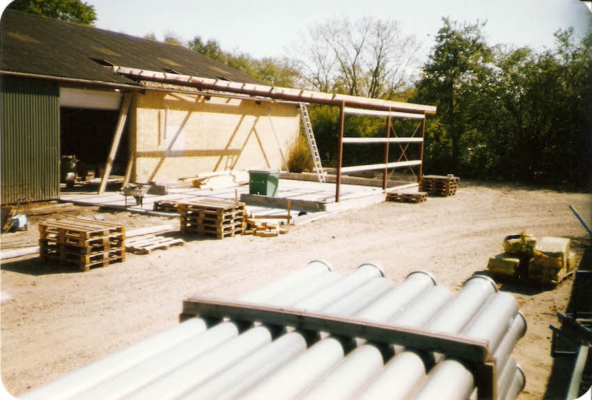 I baggrunden kan man til højre se drivhuset på Tvevadgyden. Det blev også anvendt af blomkålsgartneriet i en periode, men det måtte lade livet under orkanen i 1999.