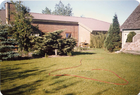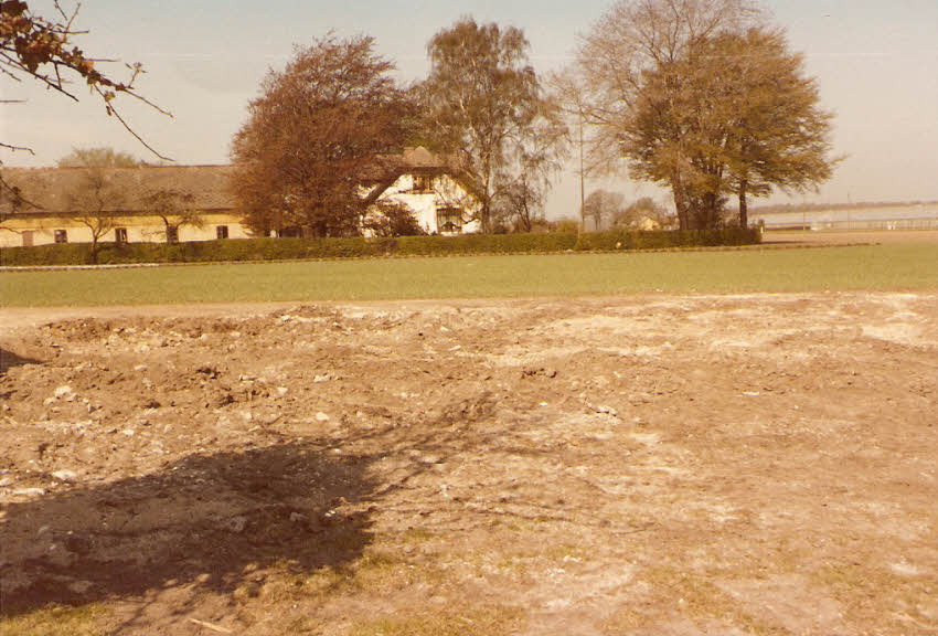 Den bare jord i forgrunden er der hver det gamle grisehus lå.