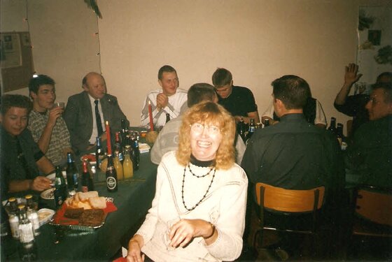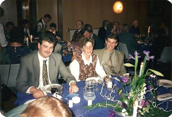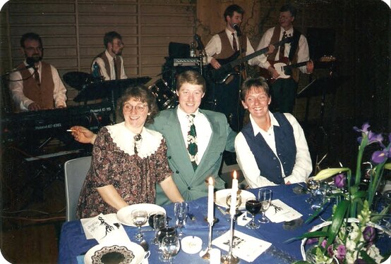 Lene Henriksen, John og Lisbeth Kern ved den samme julefrokost.