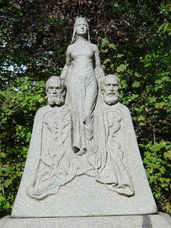 Det er digteren Edvard Lembcke og historikeren A.D. Jørgensen, der sammen med ”Modersmålet” skuer mod det tabte Sønderjylland.