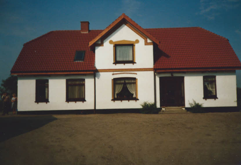 Han kom en dag og ville gerne købe en byggegrund netop på hjulmandstoften. Han spekulerede frem og tilbage. Begge var, måske nok især Sine, lidt betænkelige ved, at man så mistede udsigten mod Kirkeballe. Men resultatet blev, at karetmageren fik byggegrunden. Det var først på året 1908, og sommeren samme år byggede han der. - Nu var det så afgjort, hvor der skulle bygges, og det skulle så være næste år - 1909. Der blev sendt en skitse til familiens gode ven, daværende bygmester Andreas Andersen, Askov, med anmodning om at lave tegning og overslag (Kan ses længere nede på denne side). Da de havde modtaget og godkendt dette, blev der antaget håndværkere til de forskellige arbejder. Der var ikke tale om entreprise, Mads var selv bygherre. Murerarbejde: Hans Hansen, Ferritslev, Tømrerarbejde: Peder Pedersen, Ellinge, og Hans Johansen, Ferritslev, snedkerarbejde: Karl Windeballe og snedker Fr. Rasmusmen, Lyomskov, malerarbejdet: Niels Jensen, Ellinge. Leverandører: Ellinge Teglværk, Odense Kalkværk; Sønderskoven: graner til spær, Otto Nielsen, Nyborg: bjælker og brædder, tagsten fra en fabrik i Nyborg. Grus til støbning af grund og til mørtel kørte vi selv sammen med naboer fra Øksnebjerget og Caspersen Grusgrav. - Arbejdet med nedbrydning blev påbegyndt tidligt om foråret 1909, men selve glæden ved at få et nyt og rummeligt hus har nok været blandet med vemod, da det gamle faldt, dette, som havde været rammen om flere slægtleds dagligliv i sorg og glæde, skuffelser og håb.