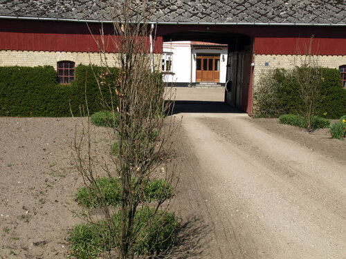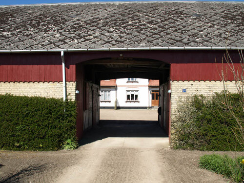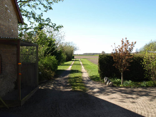 Møddingen var før ombygningen inde i gården. Øst for haven var en rektangulær lavning, ca. ½ alen dyb, længden langs med haven ca. 10 meter, bredden ca. 4 meter. Jeg gætter på, at der her er gravet ler til stuehusets opførelse. Enkelte af felterne ud mod haven var af de risflettede, lerklinede vægge.