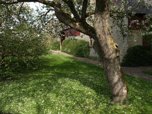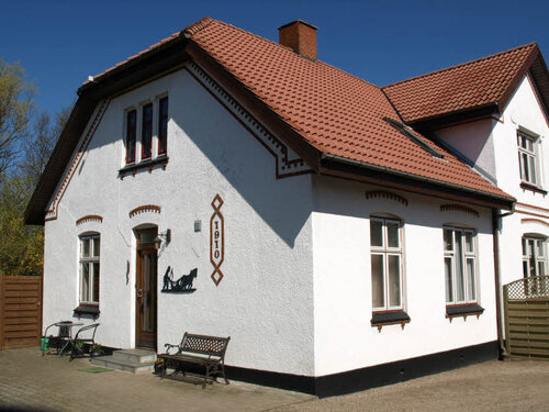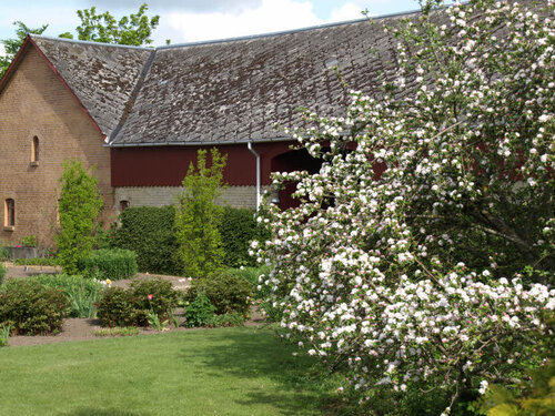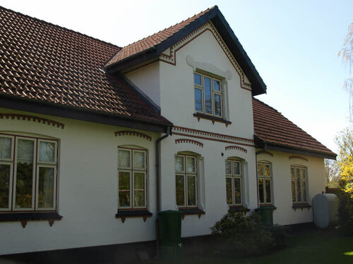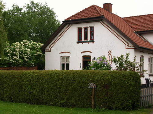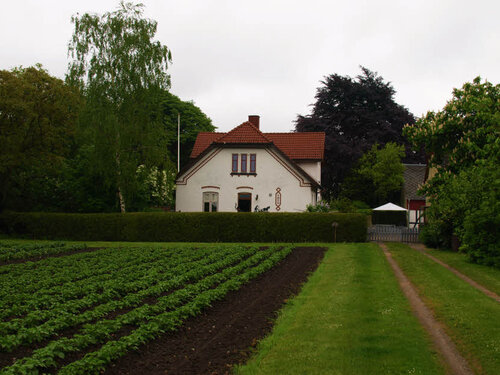 Lad mig tilføje, at gulvet i stadsstuen var hvidskuret; i de øvrige rum var der ferniseret. Nordvest for denne gavl lige ind til havens nuværende vestside lå indtil 1896-97 et mindre hus. Det blev benyttet til brændehus m.m. Stuehusets sydside var næsten helt dækket af vintergrønt (efeu), som både var smukt og lunt i vintertiden. De gamle lader kan jeg ikke huske, kun som nævnt erindre opførelsen af de to.