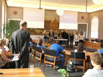 Mandag var de på rådhuset i Nyborg, hvor borgmester Jørn Terndrup bød velkommen.
