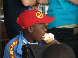 Derefter var der rundtur i byen, og den sluttede på Lauses Grill på havnen, hvor alle fik en stor iskage.