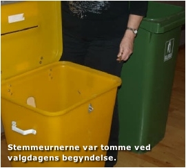 Kl. 09.00 Afstemningsstedet blev åbnet og den første vælger kunne konstatere, at stemmeurnerne var tomme.