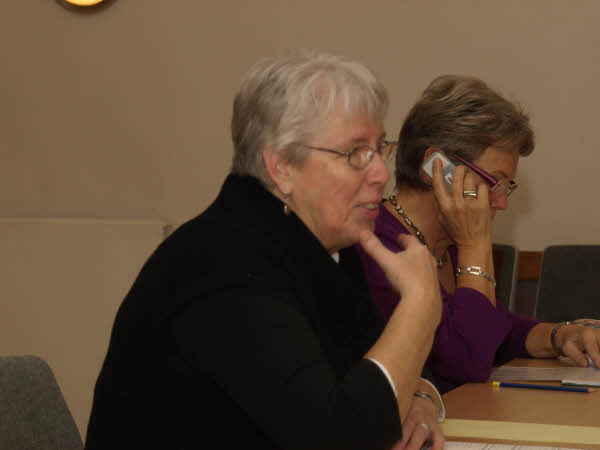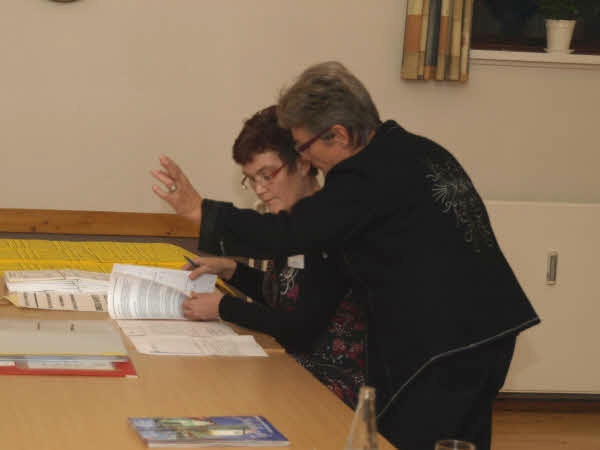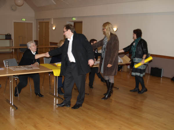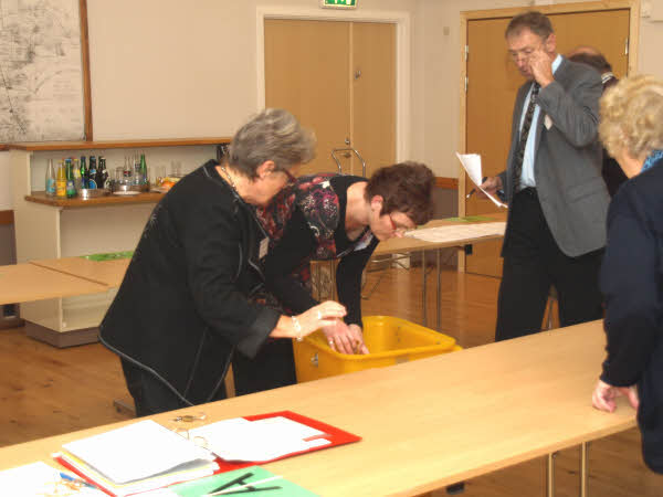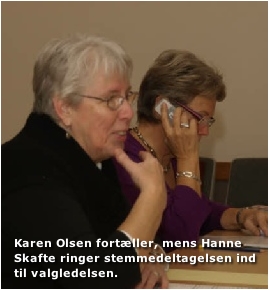 Hanne Skafte annoncerer, at valghandlingen kan begynde, mens Inger Kildegaard ser til.