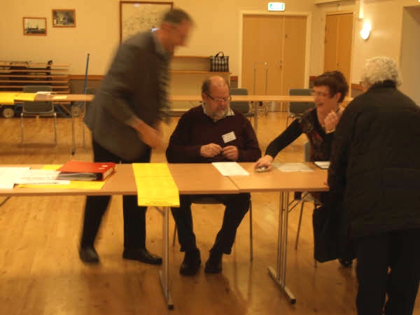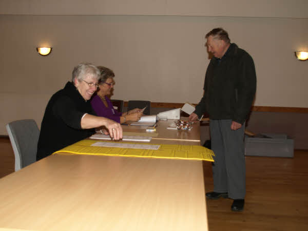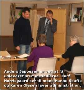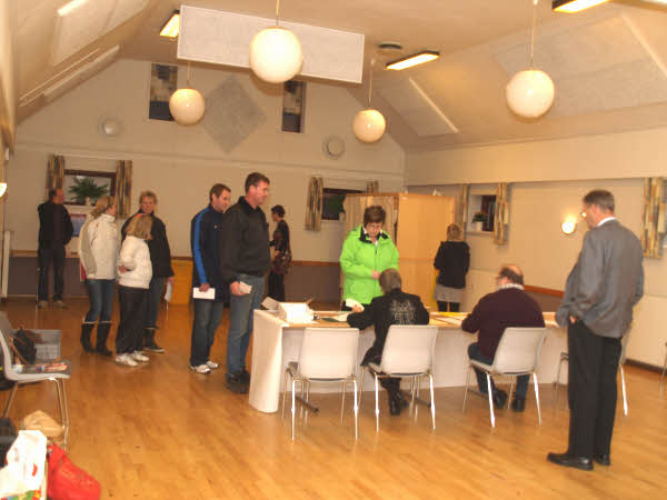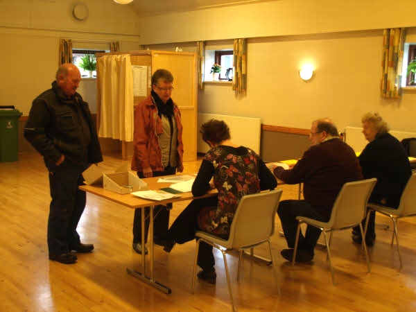 Kl. 12.00 var stemmeprocenten 19%, og det svarer til at 76 har afgivet deres stemme i Ellinge Forsamlingshus.