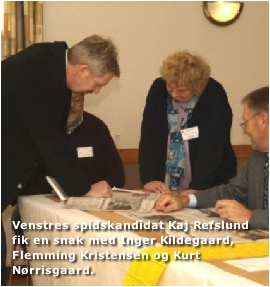 Borgmesterkandidat Kaj Refslund (V) er på besøg og får en snak med Flemming Kristensen.