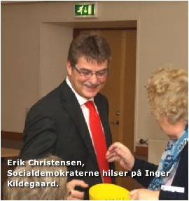 Borgmesterkandidat Erik Christensen (5) er på visit og bliver budt på slik af Inger Kildegaard.