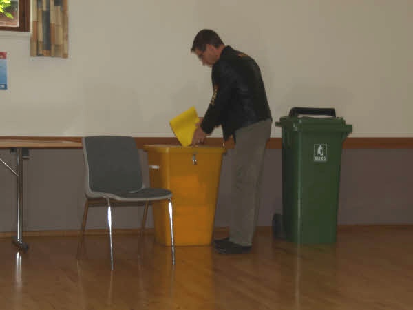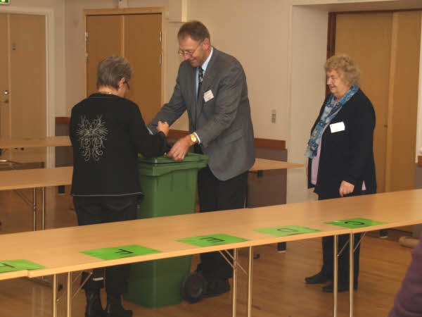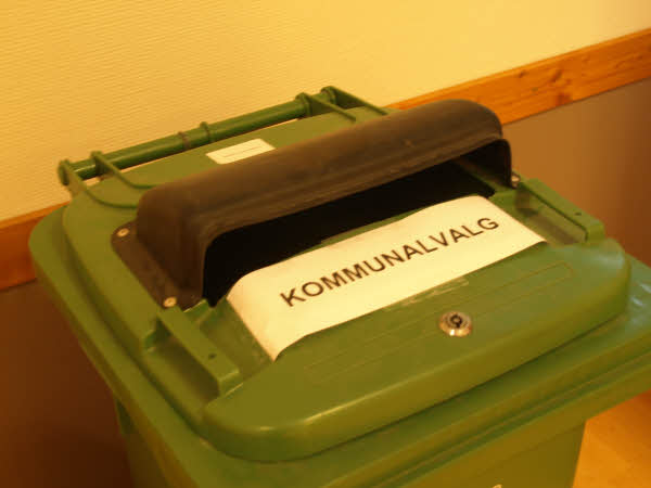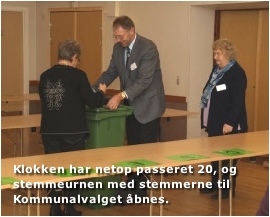 Først åbnes valgurnen med stemmesedlerne til kommunalvalget.
