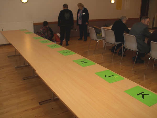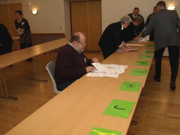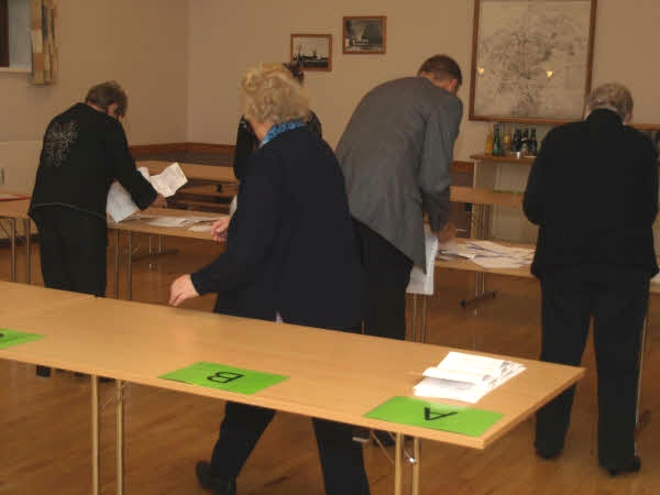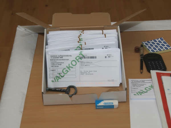 Der er gjort klar til optælling af stemmesedlerne, som placeres i alfabetisk rækkefølge i forhold til listebogstaverne.