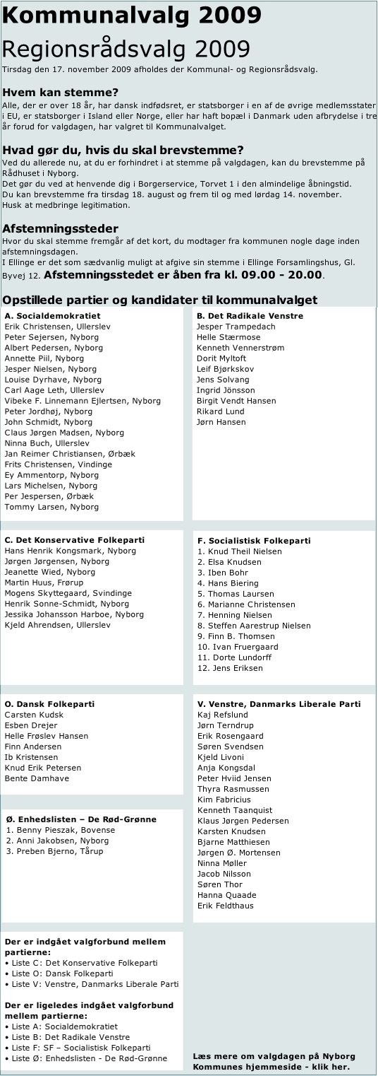 Billeder og tekster på denne side er bygget op efter det der kunne læses på Ellinge's hjemmeside i dagene op til valget 2009, og i dagene efter.